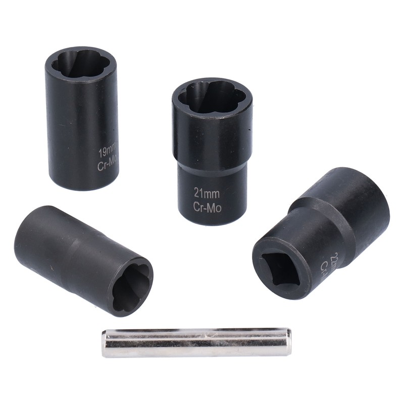 1、This lug nut socket set is made from quality chromium molybdenum steel material, the perfect tool set for nut removal. 2、This lug nut socket set can be applied to quickly remove worn lock nuts, including rust, deformation, peeling or breaking, and car wheel hubs. 3、Plum shaped internal thread design provides excellent torsion for easy and convenient fastening. 4、The unique internal texture makes it easier to hold on to the stubborn nut for easy and efficient removal. 5、This lug nut socket set has black oxidation surface which provides high hardness and high durability.