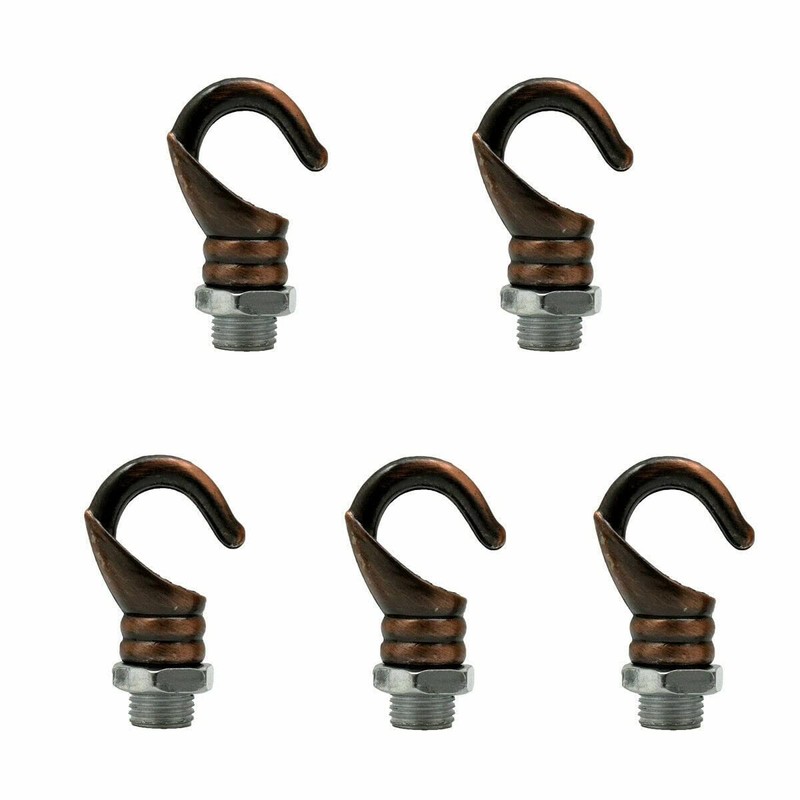 5pcs Mini Ceiling Hooks Antique Carving Safety Buckle Design Q Hanger M10 Screw Nut Hook Ring for Home, Office and Kitchen