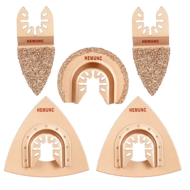 5pcs Mixed Universal Carbide oscillating Tool Blades Set, HEMUNC Quick Release oscillating Saw Blades Accessories kit for Tile Grout Mortar Concrete Masonry