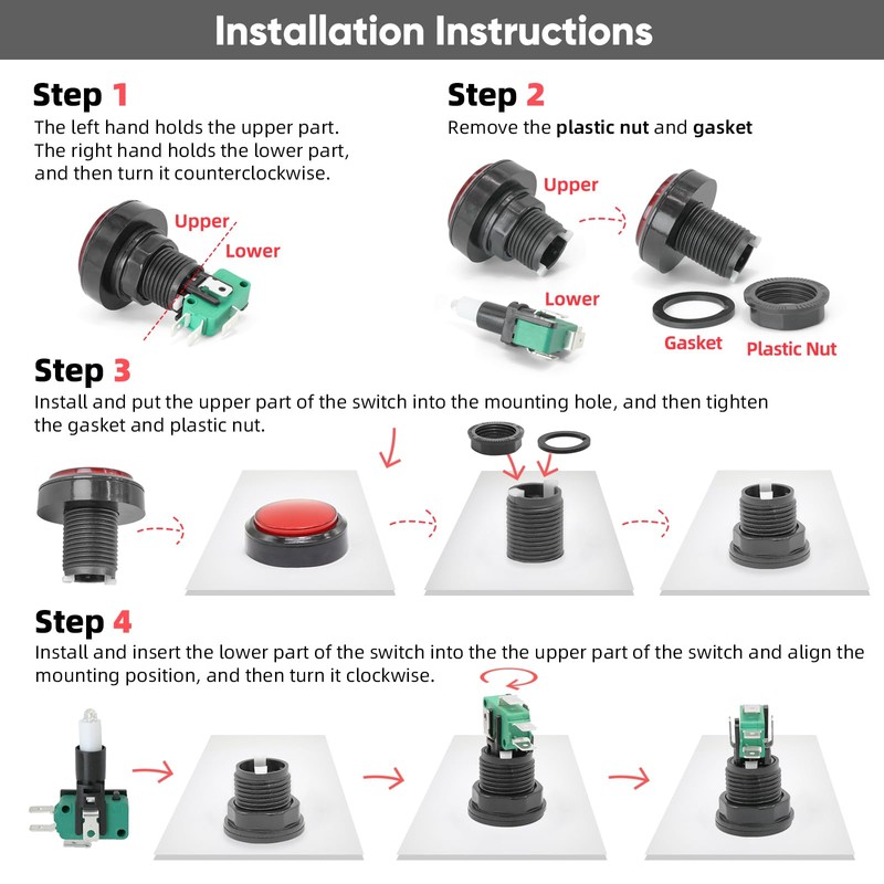 5PCS Momentary Push Button Arcade Switch Medium Round 12V DC SPDT 1NO/1NC 3Pi...