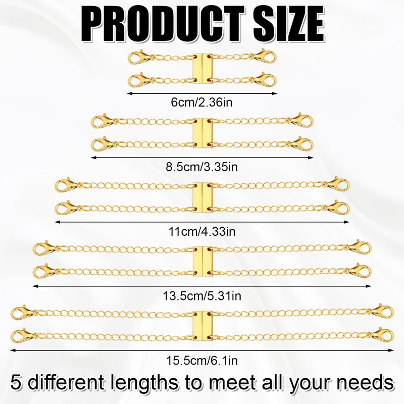 5pcs Necklace Extender, Alloy Magnetic Jewelry Extenders with 5 Sizes Adjustable Necklace Chain Extender Double Lobster Necklace Closures Connector for Jewelry Making (Gold)
