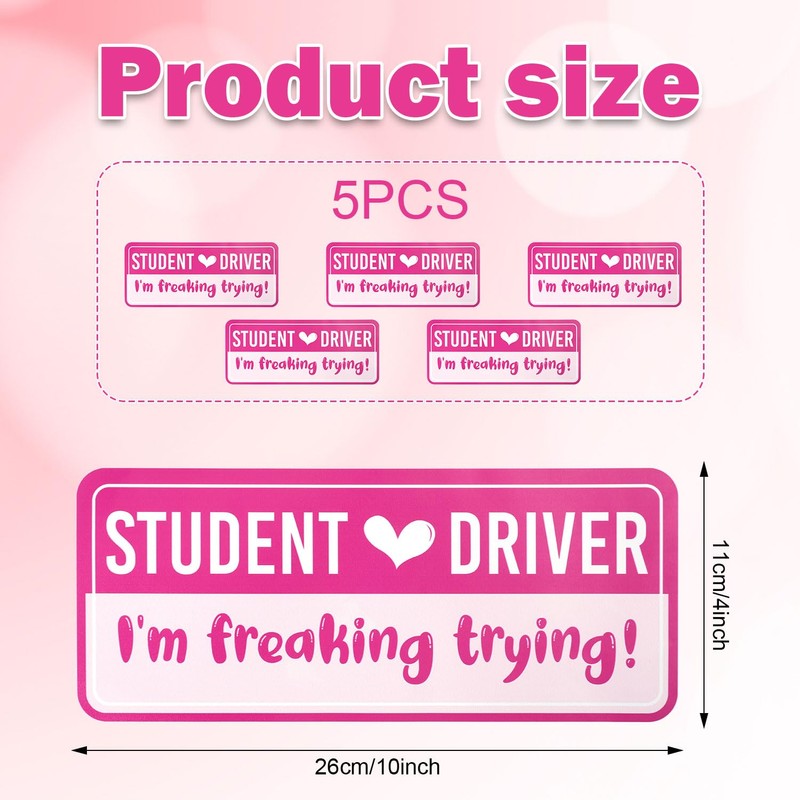 5pcs Non-Magnetic New Driver Stickers, Waterproof Removable Novice Driver Sticker I'm Freaking Trying Pink Student Learner Rookie Driver Signs Clear Easy to Peel Warning Sign for Car Smooth Surface