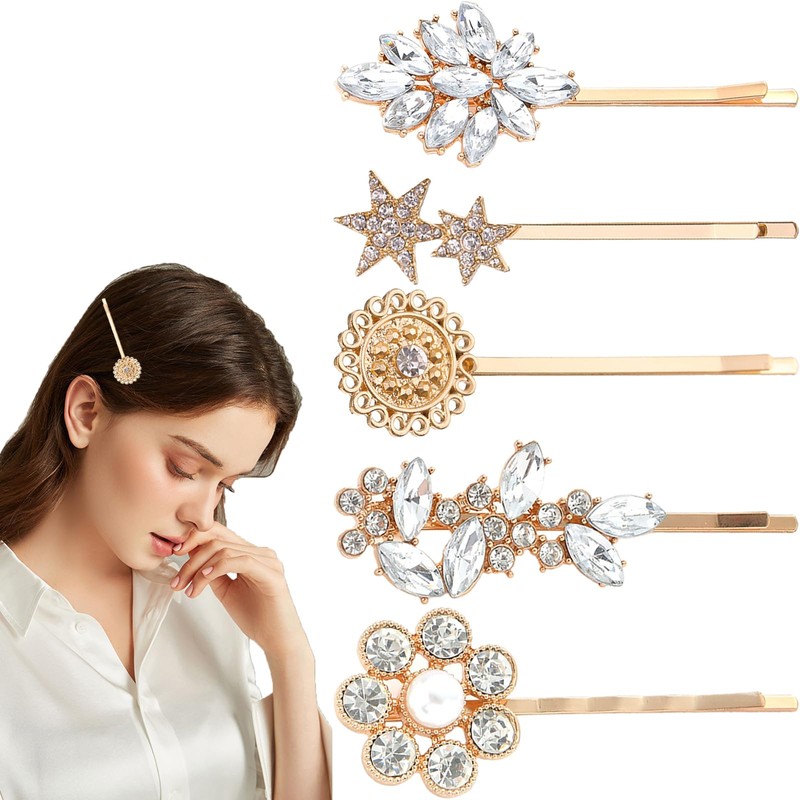 • 【Package Include】You will get 5pcs gold rhinestone flower hair clips in retro styles that are exquisite and charming and suitable for any hairstyle