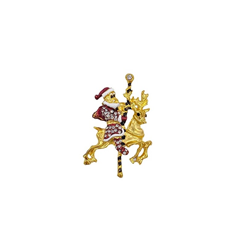 - Beautiful Santa with Rhinestones on a Gold reindeer merry go round