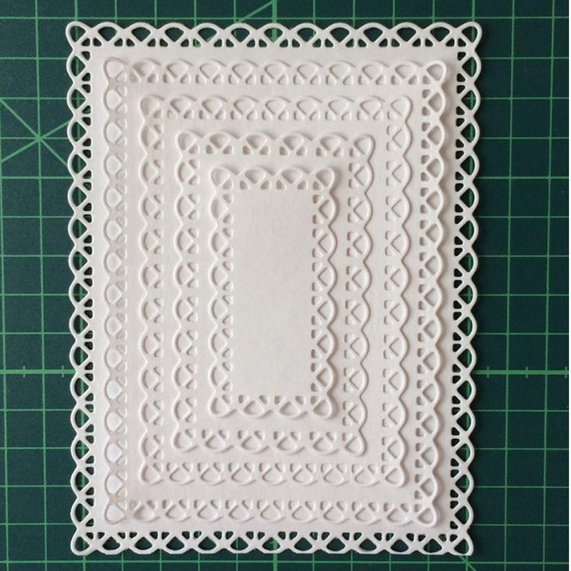 5pcs/Set Lace Rectangle Frame Metal Die Cuts, Christmas Lace Wave Long Square Frame Cutting Dies Cut Stencils for DIY Scrapbooking Album Decorative Embossing Paper Dies Card Making