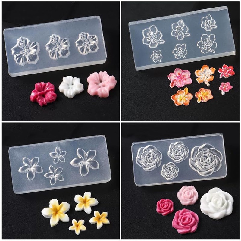 - 5pcs Silicone Nail Molds Flower Nail Mold Plumeria Cherry Blossom Rose Petunia Ocean Nails Charms 3D Gel Nail Art Mold DIY Flower Charms for Nails Design Resin Molds Manicure Flowers Carving Mould