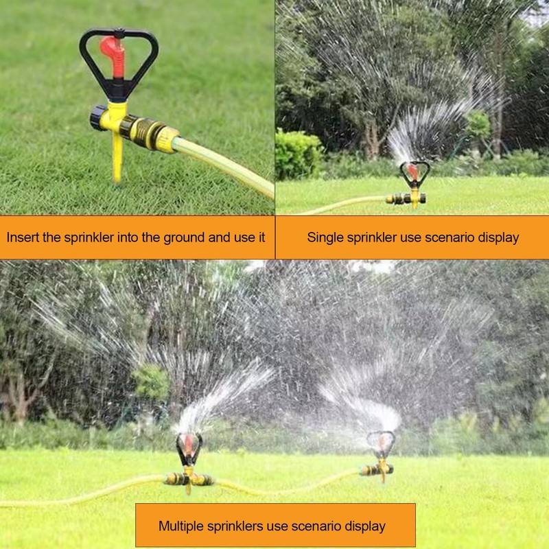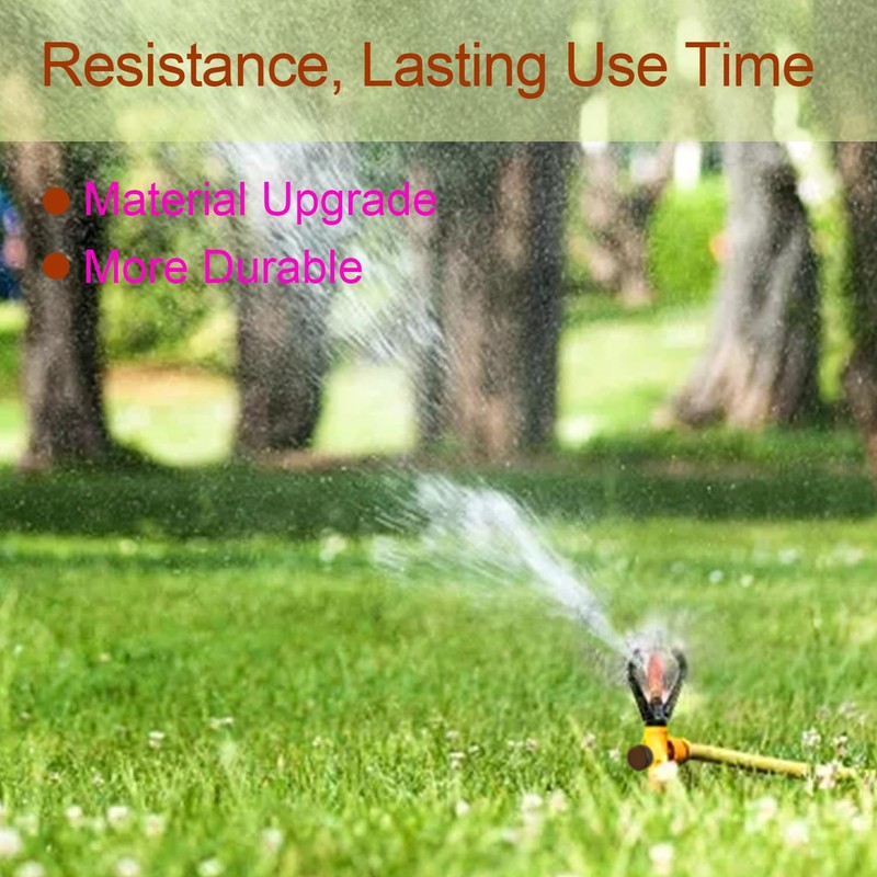 - Sprinklers for Garden: Equipped with a 360° nozzle and a plastic spike ground plug, it can be easily fixed in the grass, and the oscillating spray pattern makes the watering more evenly,and can be connected to a 1/2-inch, 3/4-inch or 1-inch hose for use