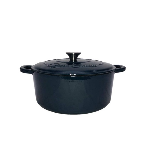 - 5QT NAVY BLUE ENAMEL CAST IRON DUTCH OVEN w/ silver "Cajun Classic" knob