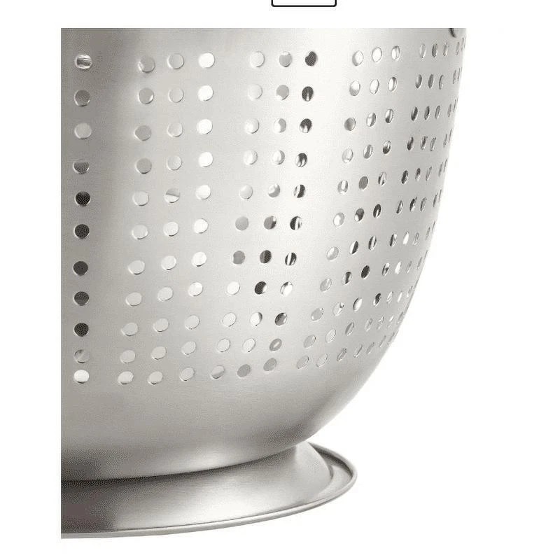 FEATURES: The stainless-steel colander is great for washing, rinsing, draining, perfectly used for pasta, spaghetti, vegetable, fruit, meat and seafood, also can be used as fruit container and salad mixing bowl A sturdy base allows it to sit on the countertop or sink 2 side handles for griping comfortably and holding heavy food easily D-shaped handles are strongly welded for easy lifting, carrying and transferring Stainless Steel colander is Dishwasher Safe, durable, and easy to clean and maintain. Metal Colander add versatility and functionality to your kitchen.