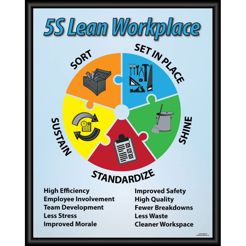 5S Lean Workplace Poster 16" X 20" Framed, Made in the USA