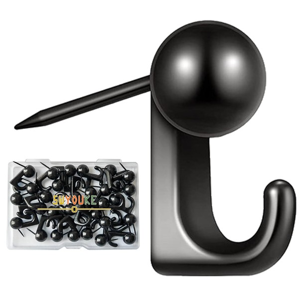 5WYOUKE (30 Pieces) Gypsum Board Hooks, Thumbtacks Hooks, Pin Hooks, Load Capacity: Approx. 11.0 lbs (5 kg), Walls, Won't Damage, Stylish, Black, Mini, Inconspicuous, Push Pins, For Rentals, Pictures, Picture Frames, Clocks, Calendars, Decoration, Wall H