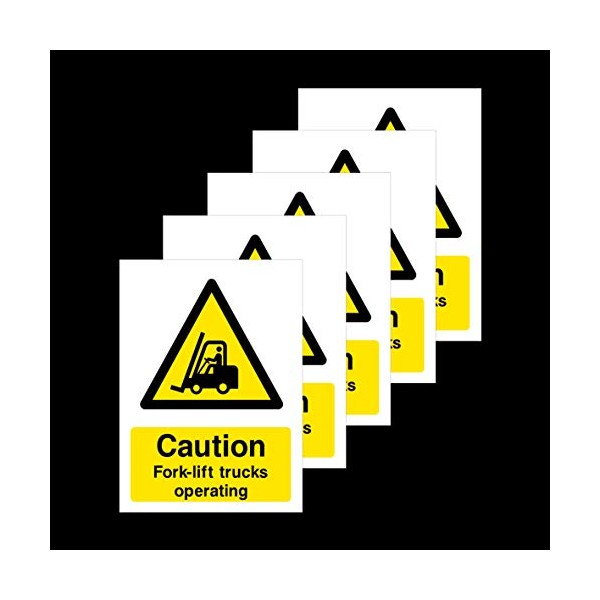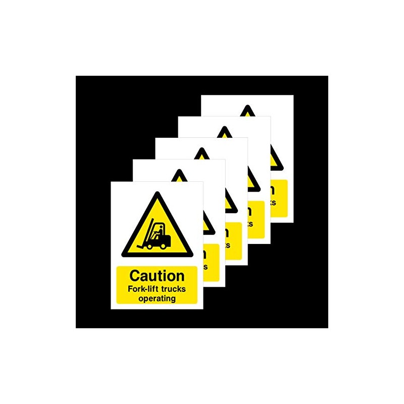 5x Caution Fork-lift Trucks Operating Rigid Plastic Sign 200x300mm