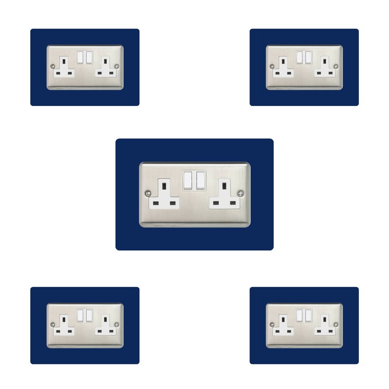 5X Double Socket Surround, Acrylic Back Panel or Plate, Protect Wall from Finger Prints, Font Colour:Navy