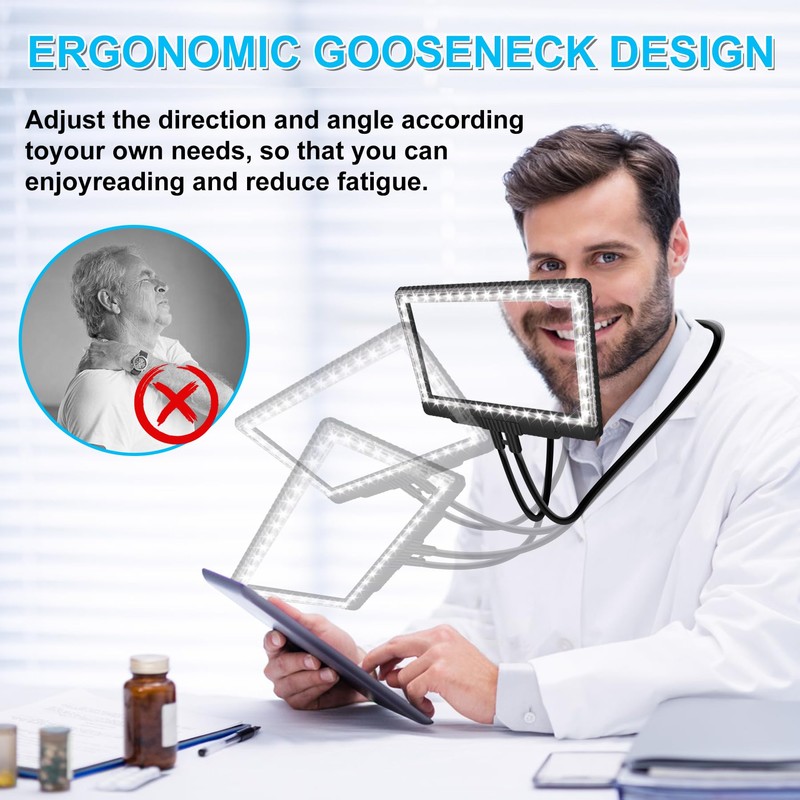 - [3-in-1 Design]This Flexible Gooseneck Magnifier offers three versatile usage options: neckwear, handheld, and stand. Unlike others, this book magnifying glass can meet your daily life and work needs.