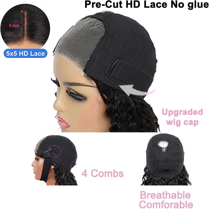 Hair Texture: Glueless wigs human hair, wear and go deep wave wigs.