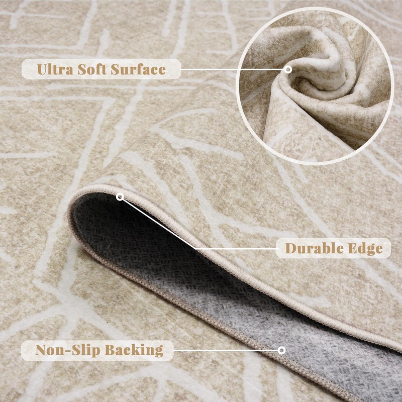 5x7 Area Rug for Living Room : Washable Rug Modern Geometric Soft Low Pile Non-Slip Stain-Resistant Carpet for Bedroom Dining Room Home Office - Beige