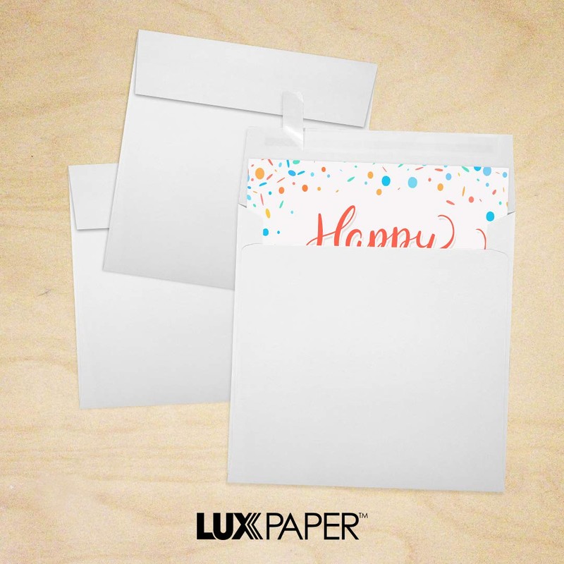- DURABLE & RELIABLE: These envelopes make excellent invitation holders and are 6 1/4" x 6 1/4" (158.75mm x 158.75mm), large enough to comfortably fit 6Ó x 6Ó cards, invitations, and smaller square envelopes. Made from LUX 70lb. Natural White paper stock with a side seam construction, these envelopes are thick and durable, making it perfect for things like photos, letters, mailings, personal mail, or invitations.