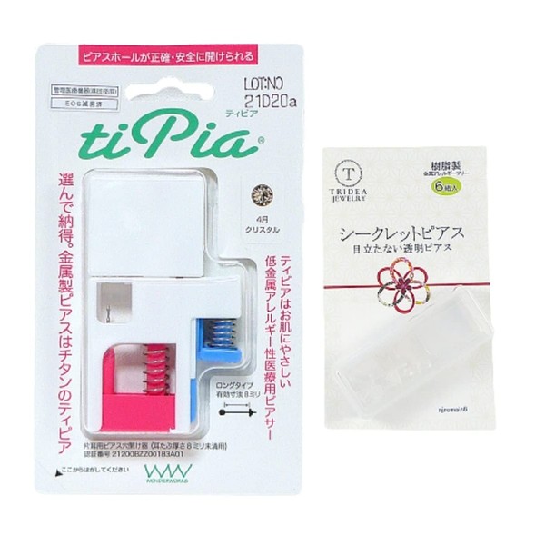 ピアッサー とうめいピアス 6セット付 ティピア (クリスタル 片耳用 1セット)