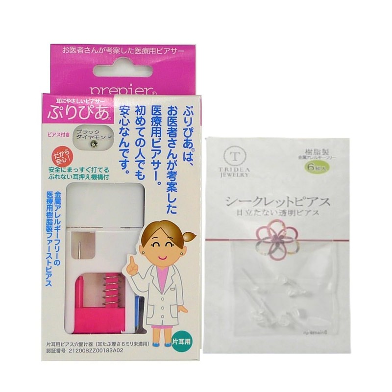 - ぷりぴあの打込用半透明シースルーピアスはお肌に優しい金属アレルギーフリーの医療用樹脂製ピアスです。どなたでも安心してピアッシングができます。