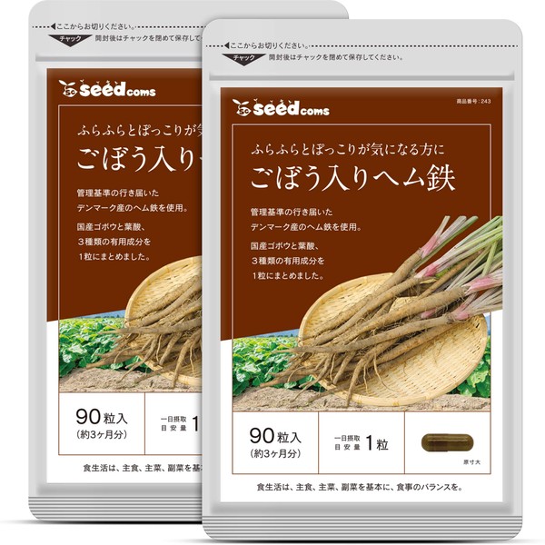 シードコムス 国産 ごぼう入り ヘム鉄 葉酸 サプリメント (約6ヶ月分 180粒)