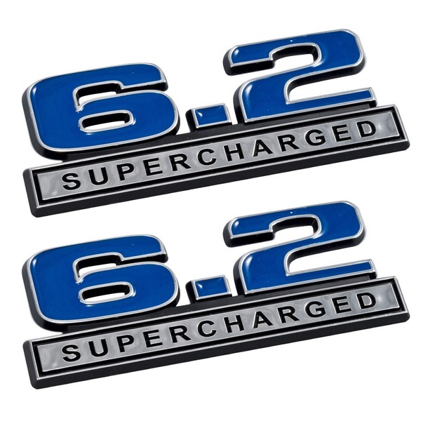 6.2 Liter Supercharged Emblems in Blue and Chrome - Pair