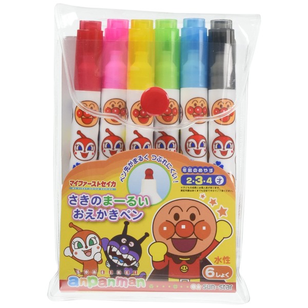 サンスター文具 アンパンマン 水性ペン さきのまーるいおえかきペン 6色 2400010A