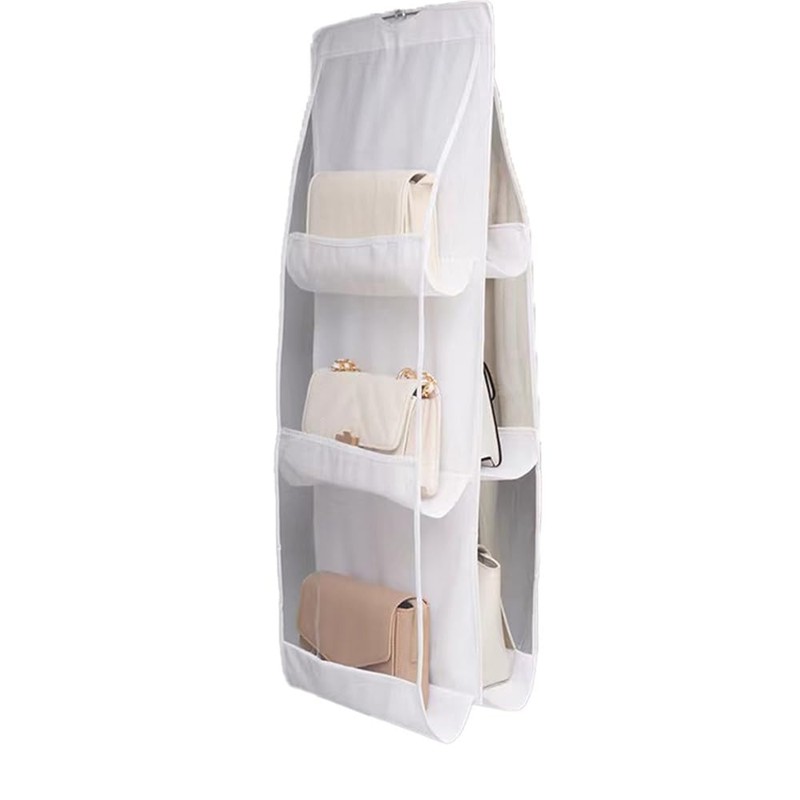 折りたたみ 収納ラック 吊り下げ 6個収納可能 クローゼット収納 バッグカバン収納 クローゼット用 ハンガーラック 不織布 水洗い可能 小物入れ収納ポケット 浴室などに最適 3段構造 透明窓付き 家庭用収納ソリューション(ホワイト)