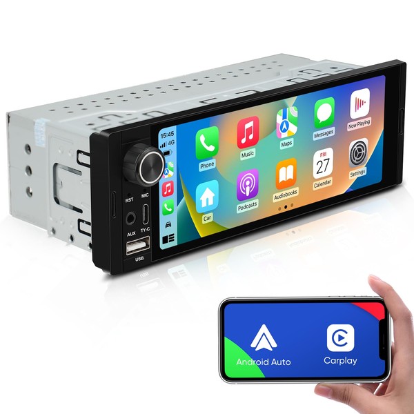 - 【Single Din CarPlay and Product Size】This car stereo with carplay is a standard single din size that is compatible with almost all brand models, the 6.36-inch carplay car radio is equipped with Linux system, supports USB, AV-in, RCA Output, backup camera input(CVBS), steering wheel control.