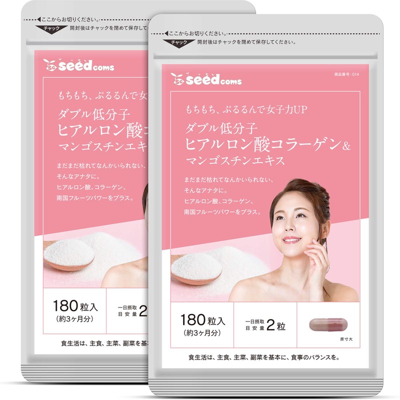 シードコムス ダブル低分子 ヒアルロン酸コラーゲン マンゴスチンエキス サプリメント フィッシュコラーゲン (約6ヶ月分 360粒)