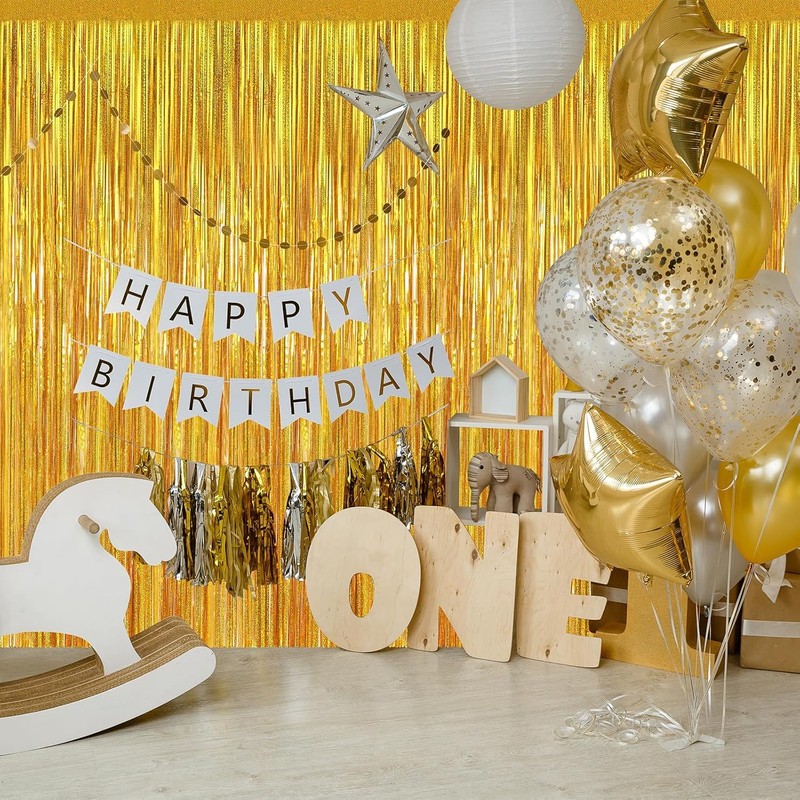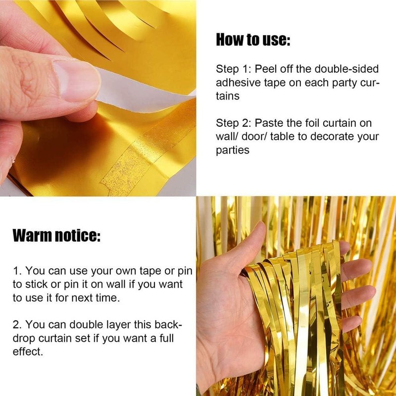 - 【You will get】Package contains 2 packs of gold aluminium foil tassel curtains, size 6.56x3.28ft/2mx1m. it is long enough for any occasion. Please do not stick the foil curtains on uneven or stained walls to prevent them from falling off!