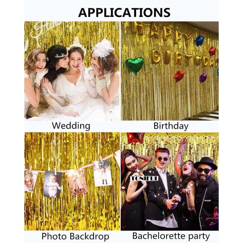 - 【Wide Application Occasions】This glittery aluminium foil tassel curtains are perfect for engagement, new year, baby shower, birthday, bachelorette party, summer party, Christmas, graduation, gender reveal, bridal shower, wedding, Halloween, Valentine's Day, photo shoots, weddings, anniversary party decorations.