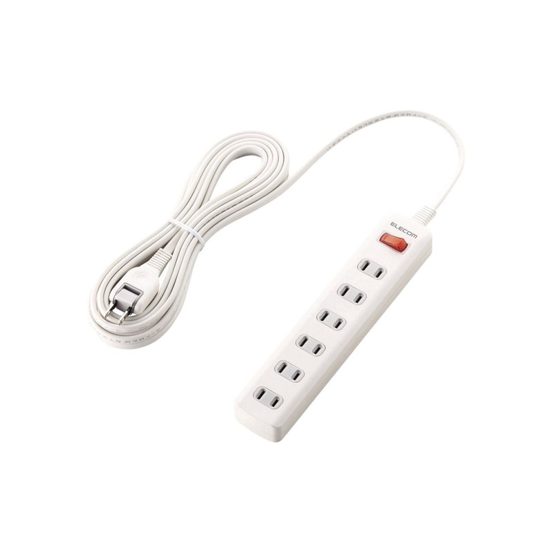 - The plug has a 2-pin type, and is a convenient 6-outlet type