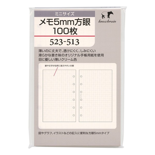 ミニ6穴サイズ メモ5mm方眼100枚 523-513 システム手帳リフィル 523-513