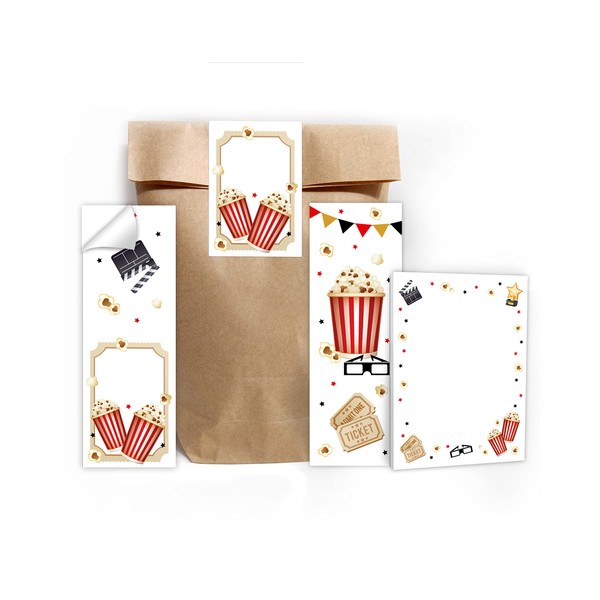 6 Bookmarks + 6 Mini Notepads + 6 Gift Bags (Natural) + 6 Stickers Cinema Cinema Party Bag Guest Gift for Children's Birthday Boys Girls