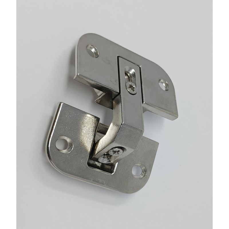 - 78 degree opening angle. No dowels. Free swinging. Universal design free swing corner hinge.