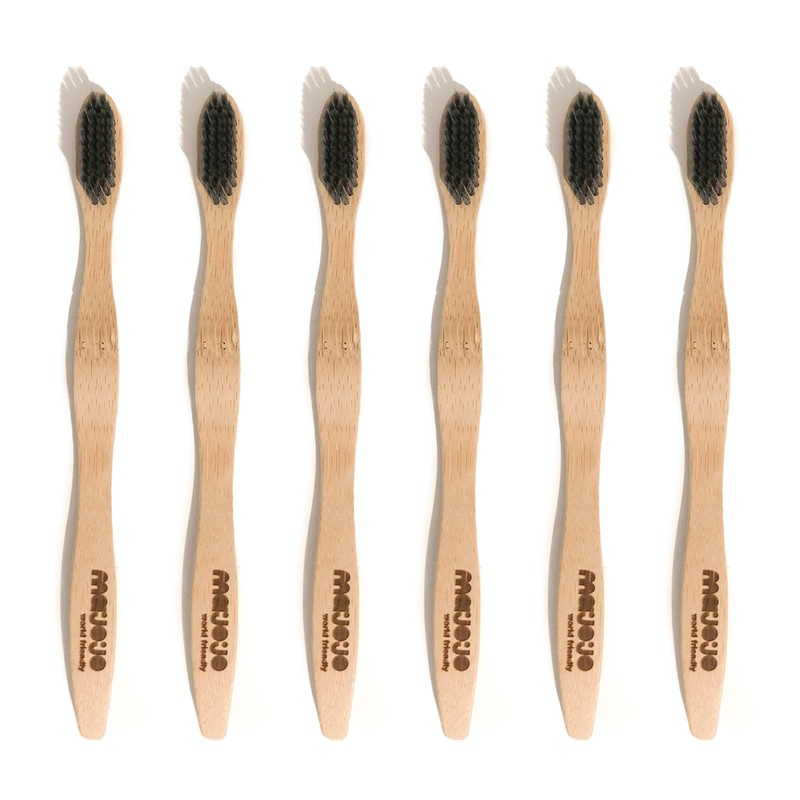 6 Cepillos de Bambú para los dientes con cerdas de Nylon, suaves. Ecologico. Asa Biodegradable.