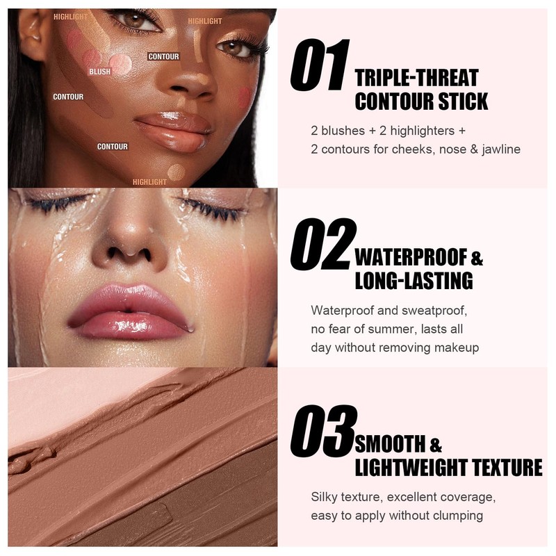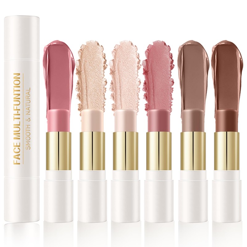 6 Colors Cream Contour Sticks Set, Shades with Highlighter, Bronzer and Blush, Double Ended Contour Sticks for Cheeks,Long Lasting, Waterproof and Matte Finish Makeup Kit (SET B)
