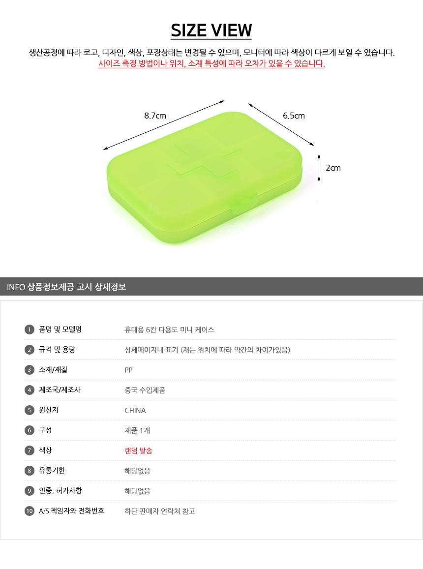 6-compartment mini divider organizer pill box multipurpose Case 6ea