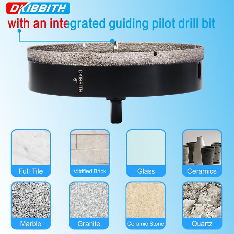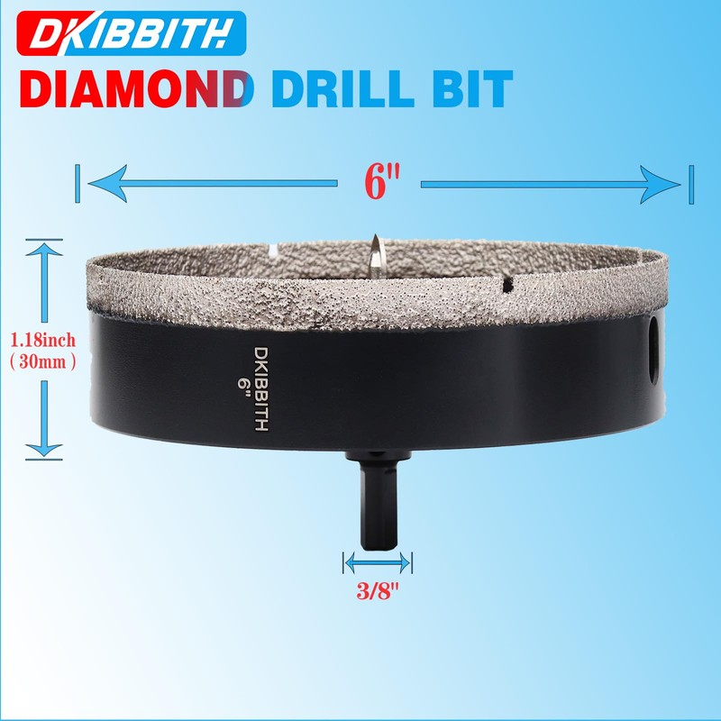 - Premium Quality & Durable: The 6 Inch Diamond Hole-Saw Bits feature a robust diamond-tipped design capable of cutting smoothly through ceramic, porcelain tile, granite, stone, glass bottles, and more. With a diamond height of 3/8" and a total length of 2-1/2", these bits are engineered for longevity and precision.