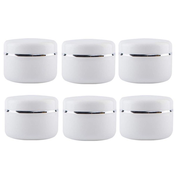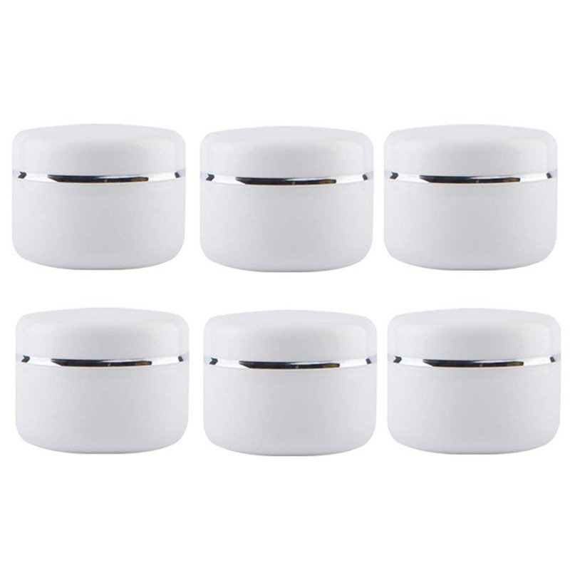 6 Empty White Plastic Cosmetic Containers with Inner Lining and Screw Lid Refillable for Face Cream Lip Balm Lotion