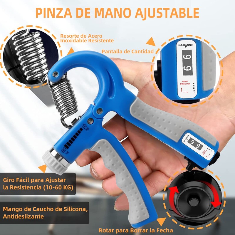 - 【Kit de Entrenamiento para Fortalecer el Agarre, Paquete de 6】: 1. Fortalecedor de antebrazo con agarre de mano ajustable con contador de repeticiones, 2. Pelota de masaje de PVC con pinchos para entrenador de fuerza de agarre, 3. Pelota de ejercitador de mano para aliviar el estrés, 4. Ejercitador y estirador de dedos de silicona, 5. O -Entrenador de agarre de anillo, y 6. Ejercitador de dedos múltiples y fortalecedor de manos (Bolsa de almacenamiento e instrucciones incluidas).