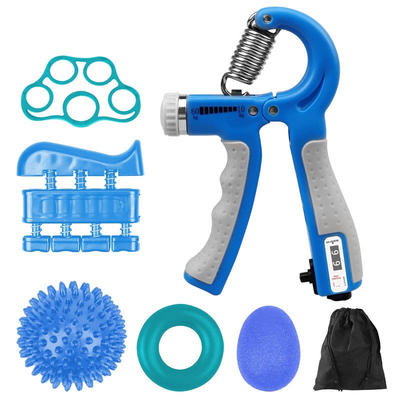 6 en 1 Ejercitador de Dedos y Mano, Fortalecedor de Agarre de Mano, Kit de Entrenamiento de Fuerza de Agarre de Mano, Entrenador de Fuerza de Agarre Kit de Entrenamiento para Desarrollo Muscular Azul