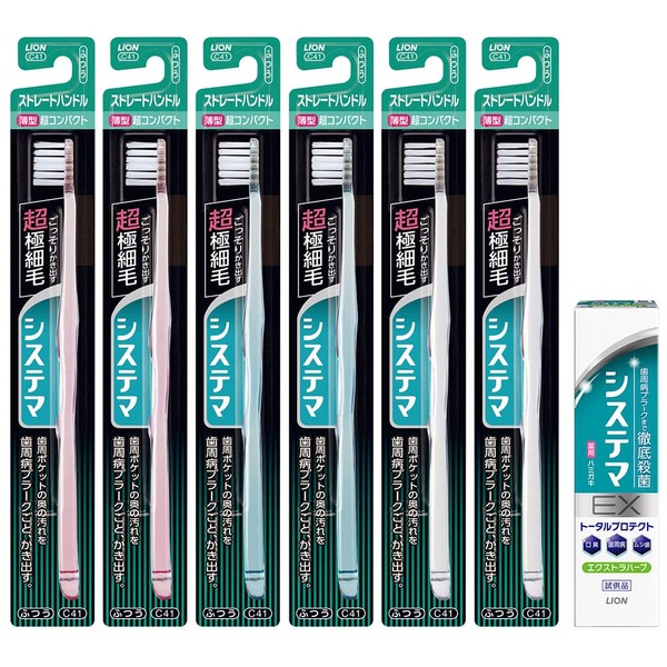 - 【Amazon.co.jp限定】 システマハブラシ 超コンパクト ストレートハンドル ふつう+exハミガキ セット 6本