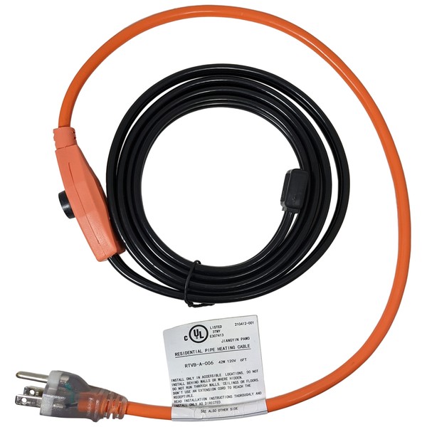 6 Foot Pipe Heating Cable, Turns On and Off Automatically Using Built-in Thermostat, Protects Pipes from Freezing, 120V, 42W - by EX ELECTRONIX EXPRESS