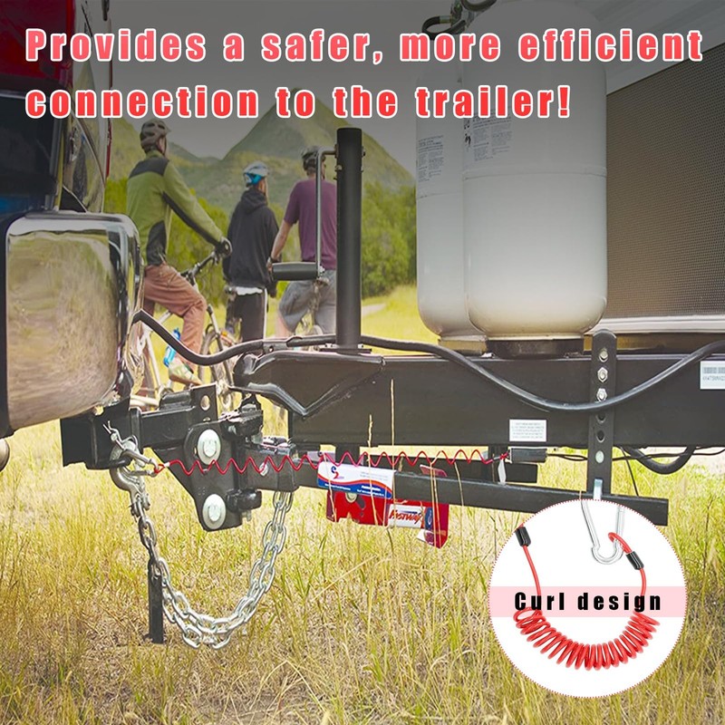 - 【Flexible Coiled Design】: The coiled design can protect breakaway cable from dragging on the ground, extending to 6 feet. Replace the cable on the trailer anti detachment device with this durable coiled cable.