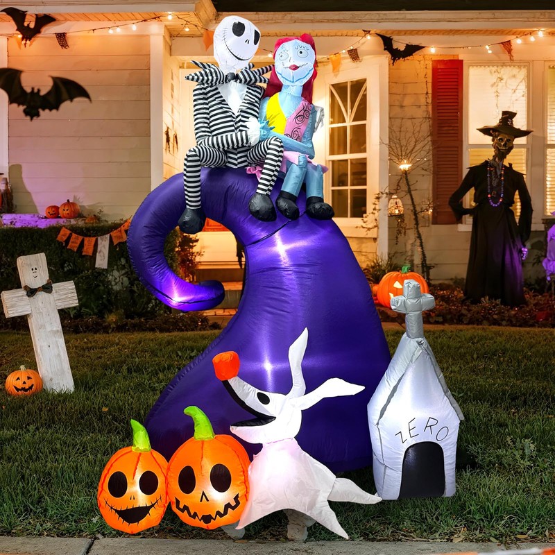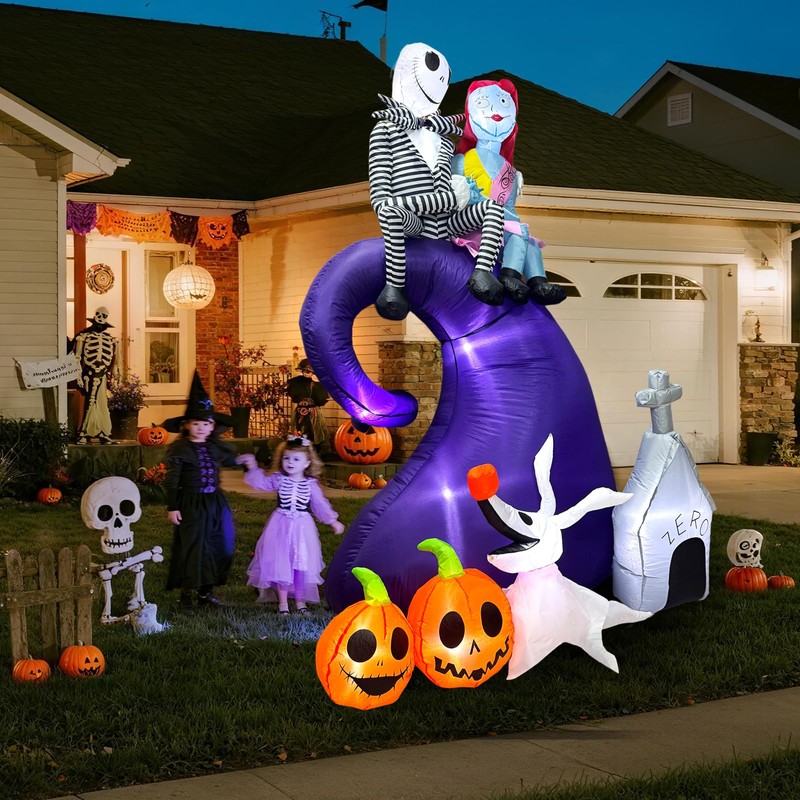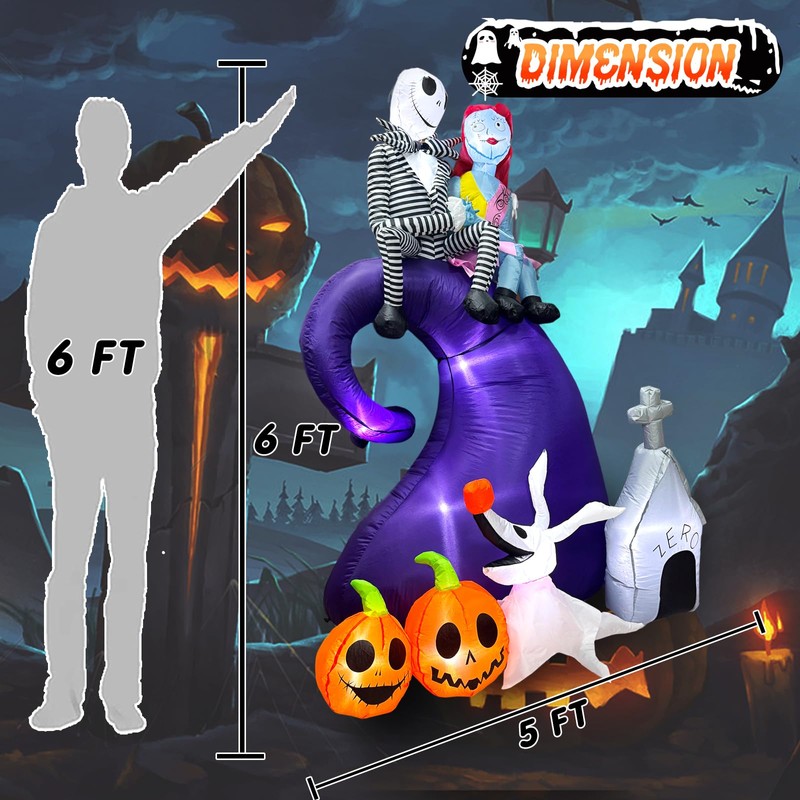 - 【Scray Skull Halloween Decorations】Unique Halloween yard decoration is 6 FT high with a scary Hill Skeleton Couple with Ghost Pumpkin and Dog and 5 updated built-in LED lights.Perfect for halloween decorations outdoor inflatable, birthday party decor, costume party decor, trick-or-treaters photo backdrop, and grabs the attention of adults kids and guests and makes your yard or lawn the focal point.