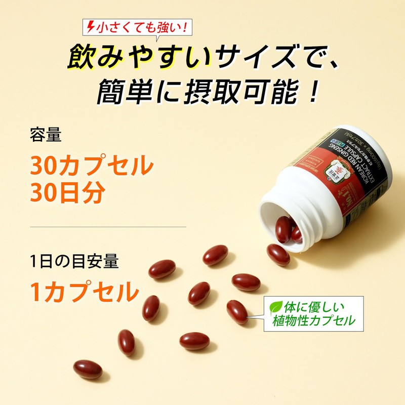 - ✅【忙しいあなたに寄り添う。】高麗人参の力を、手軽に毎日の習慣に。正官庄の高品質紅参(ホンサム)エキスを高濃縮し、飲みやすいカプセルに凝縮しました。