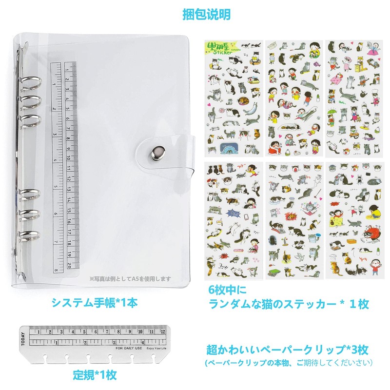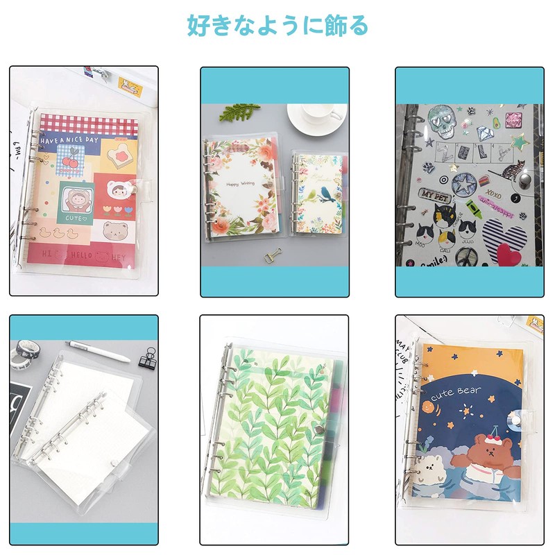 6 Hole A6 Personal Notebook Binder A6 Transparent with Bodan Notebook Cover Notebook Cover Notebook Christmas Present Cute Diary Cover with Ruler Diary Cover Memo Notebook Diary for Students Office A6