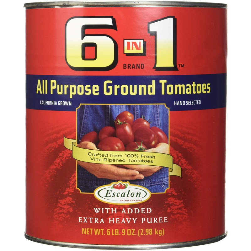 This versatile Escalon product has long been a favorite of pizza and pasta operators because of its sweet tomato flavor, bright natural color and thick, rich consistency. 6 in 1® contains only vine-ripened, unpeeled ground tomatoes, extra-heavy purée and a touch of salt.