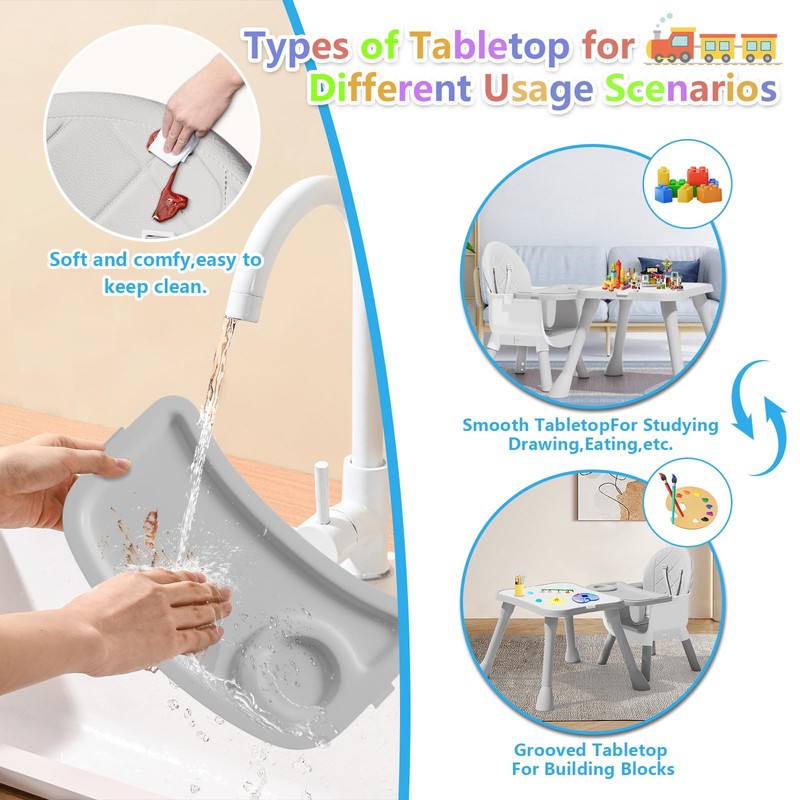 6 in 1 Baby High Chair for Babies and Toddlers, Booster Seat, Kids Learning Table & Chair (Grey)